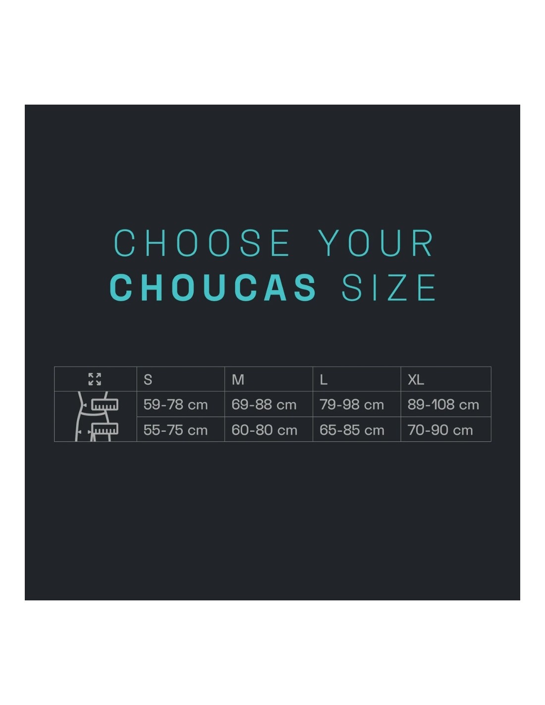 - Dimensiones cintura / pierna: S (59-78cm / 55-75cm), M (69-88cm / 60-80cm), L (79-98cm / 65-85cm), XL (89-108cm / 70-90cm).