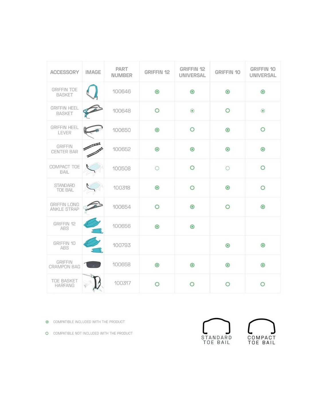 Crampones de montaña rígidos y ultraversátiles de 12 puntas, diseñados para rutas clásicas de alpinismo y terrenos exigentes. El Griffin 12 Universal ofrece compatibilidad con cualquier tipo de bota, ya sea que tenga talonera trasera o no, asegurando un agarre eficaz en nieve compacta o hielo, y comodidad al andar.