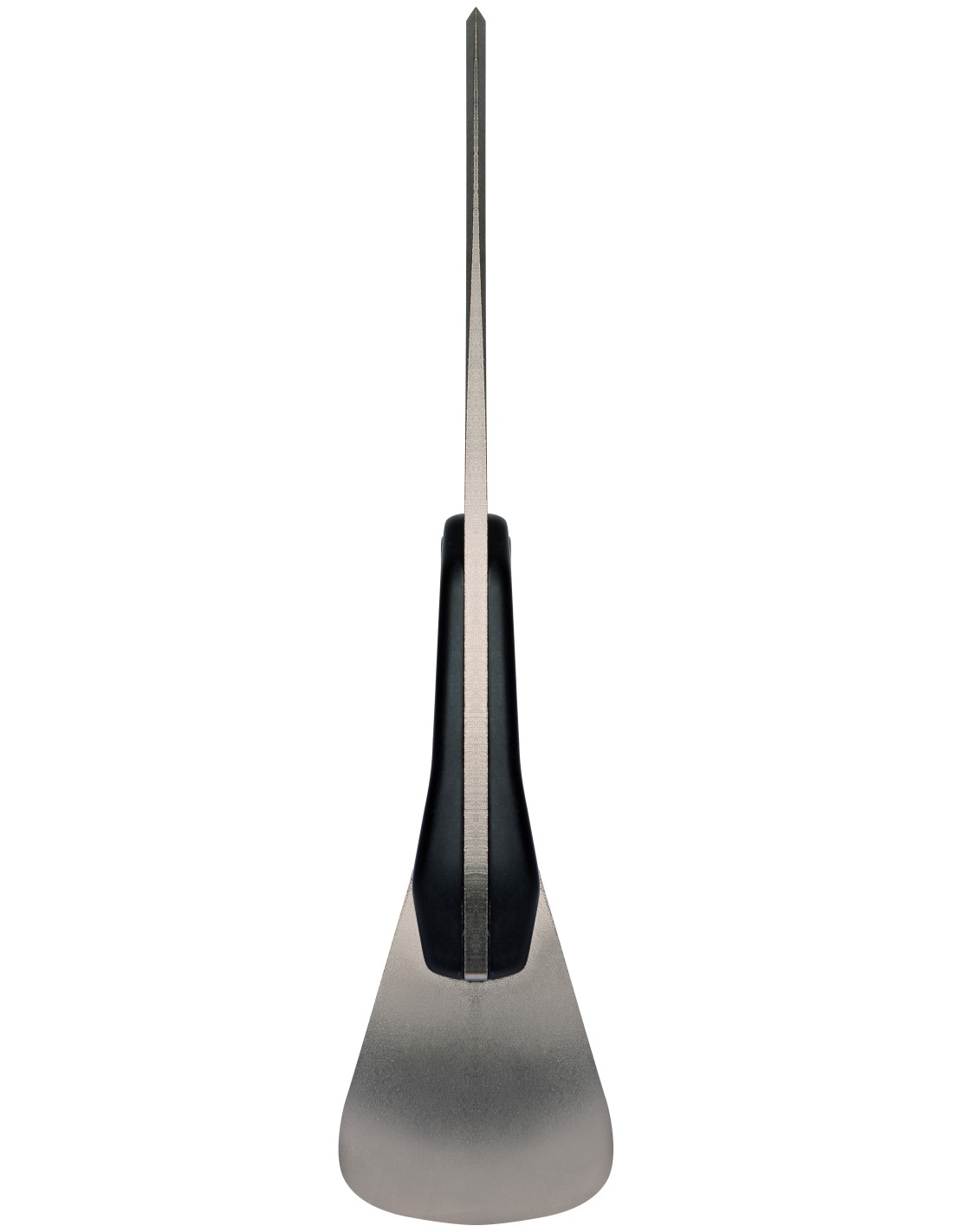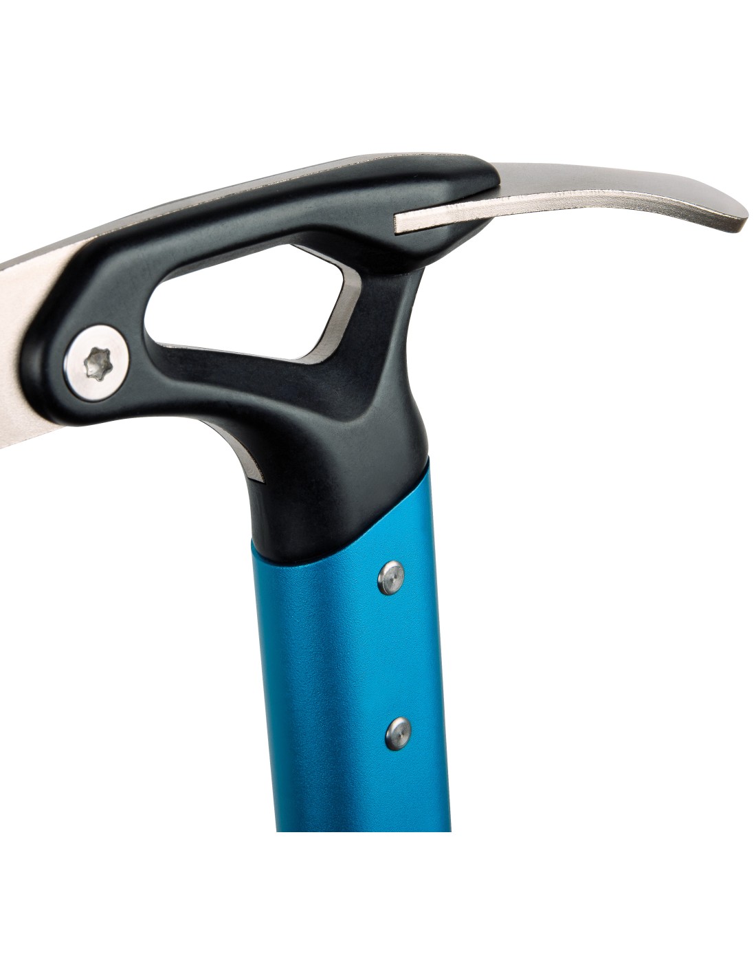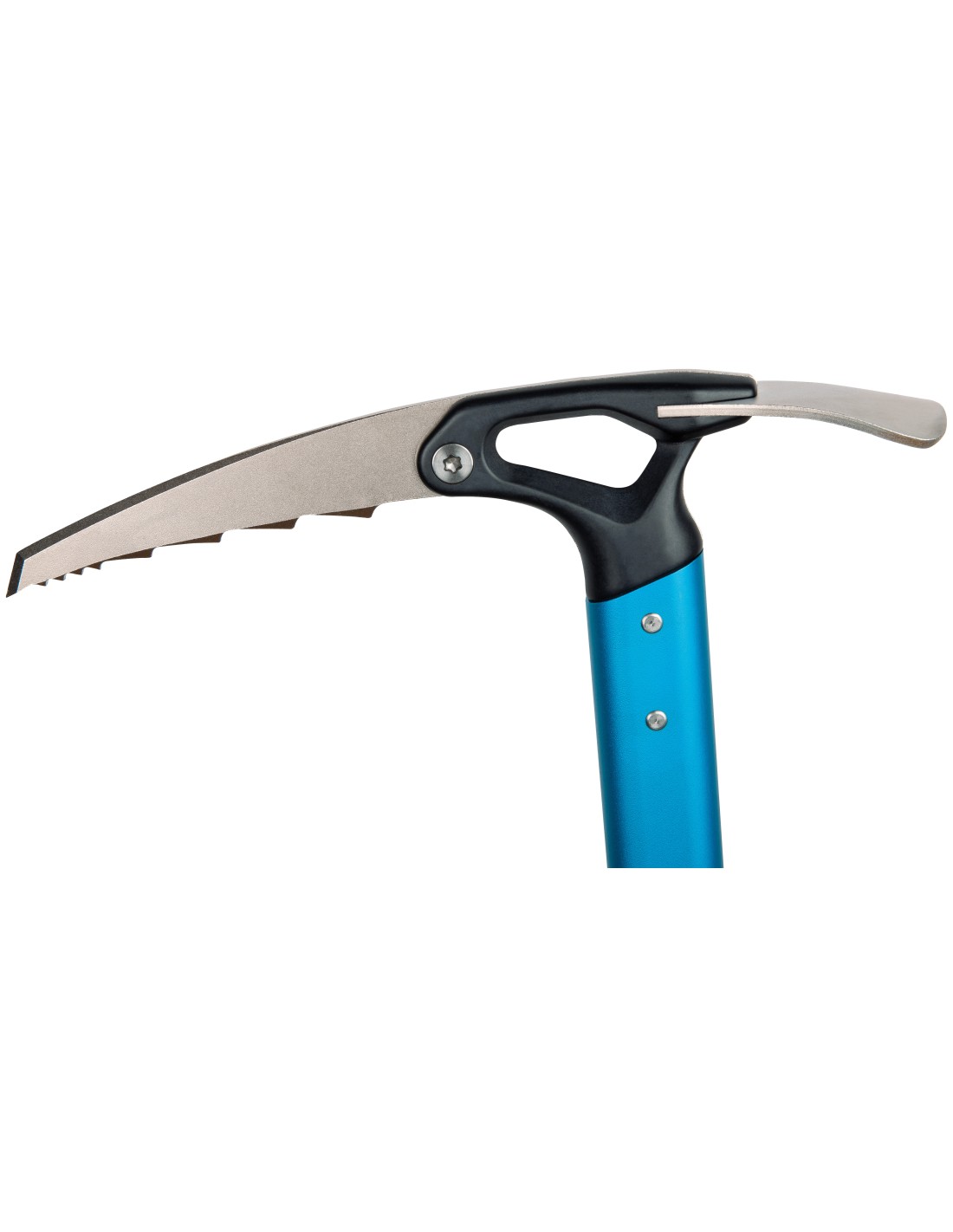 El Trigger Fast Lock se puede colocar en cualquier lugar a lo largo del eje y se puede ajustar sin herramientas. La hoja es intercambiable por lo que se puede reemplazar. El eje de curva única está optimizado con el ángulo de la púa para un balanceo ergonómico y un movimiento más natural en terrenos más empinados.
