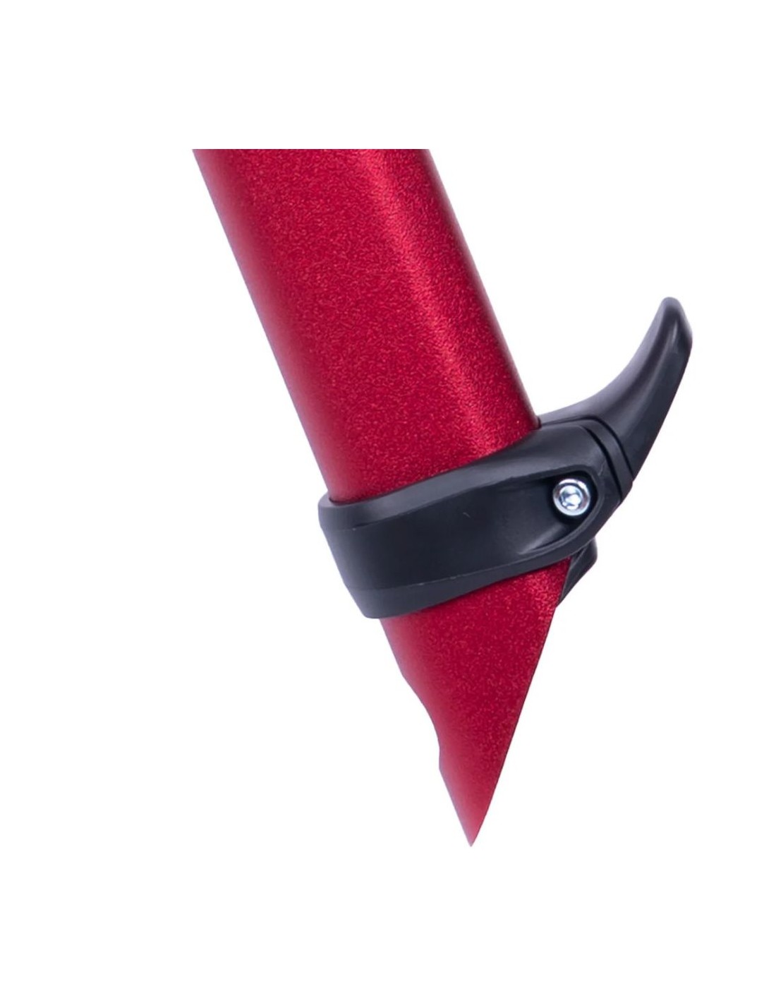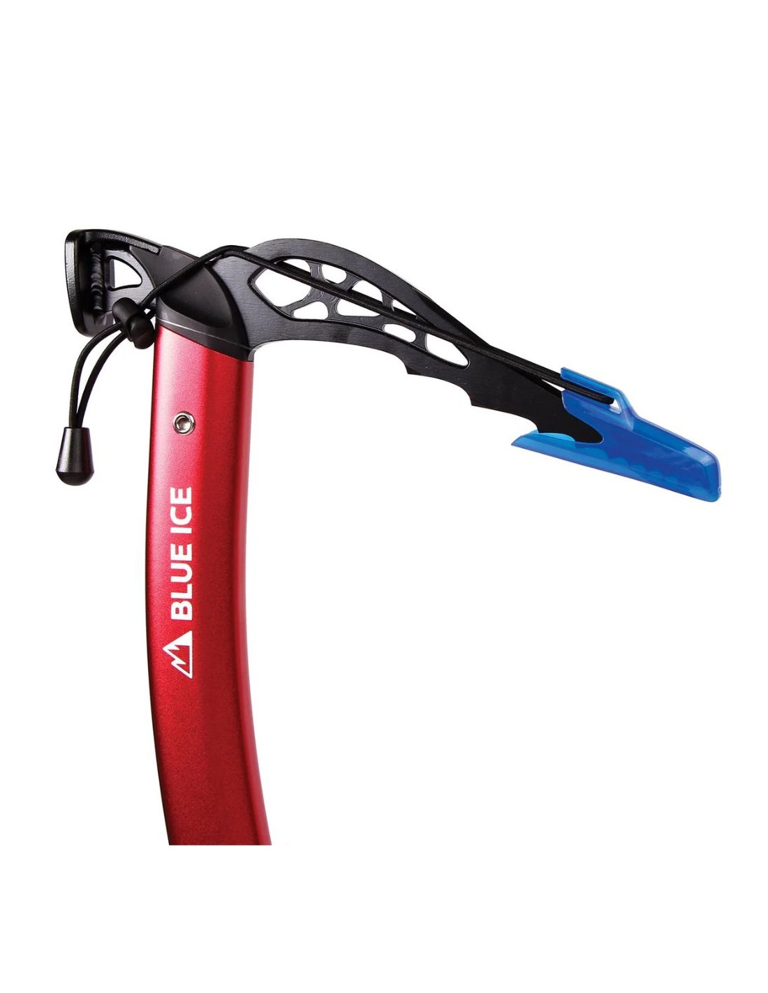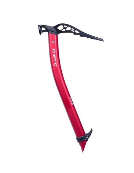 Cabezal ergonómico en acero Chromoly que asegura un anclaje óptimo, incluso sobre hielo duro o superficies mixtas. El mango curvado en aluminio anodizado (calidad aeronáutica) aporta ligereza y buen manejo, mientras que la empuñadura bi-texturizada mejora el agarre. Incluye protecciones para la hoja, la punta y la pala, y el martillo se incorpora para facilitar pitoneos o fijaciones en terrenos duros.