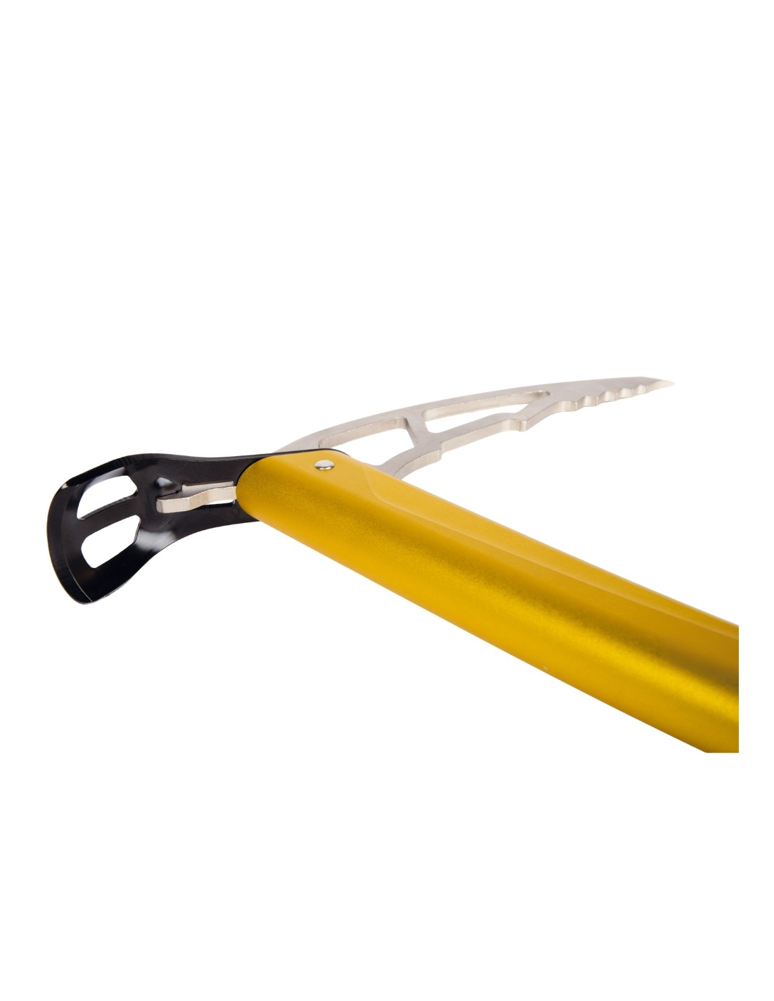 Piolet ligero con cabeza de acero que también se puede utilizar en terrenos técnicos.