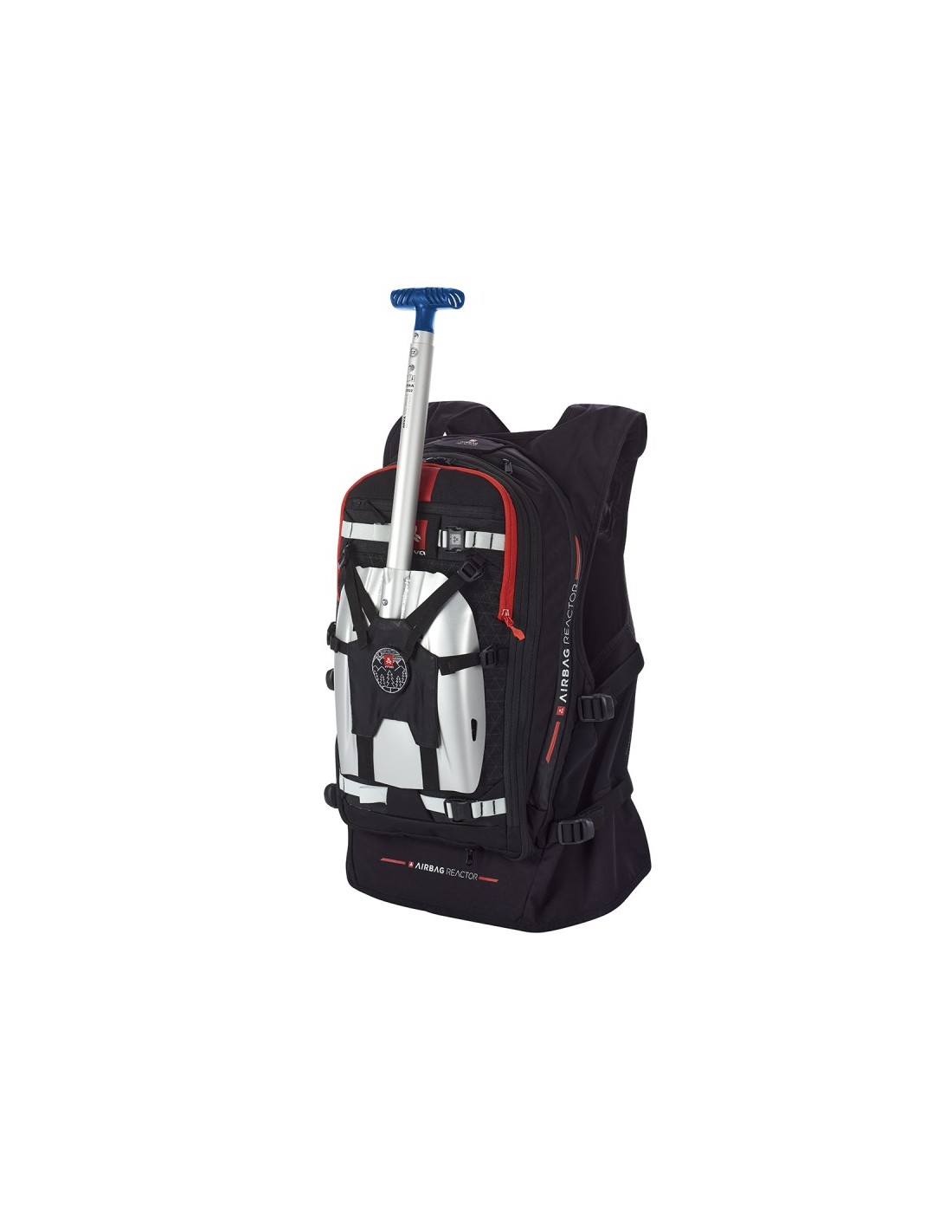 El diseño distribuye el peso de forma equilibrada sobre el torso, manteniendo la carga estable incluso en movimientos bruscos. Dispone de múltiples bolsillos frontales de acceso rápido, espacio para el material de seguridad y compatibilidad para transportar esquís, snowboard y piolets.