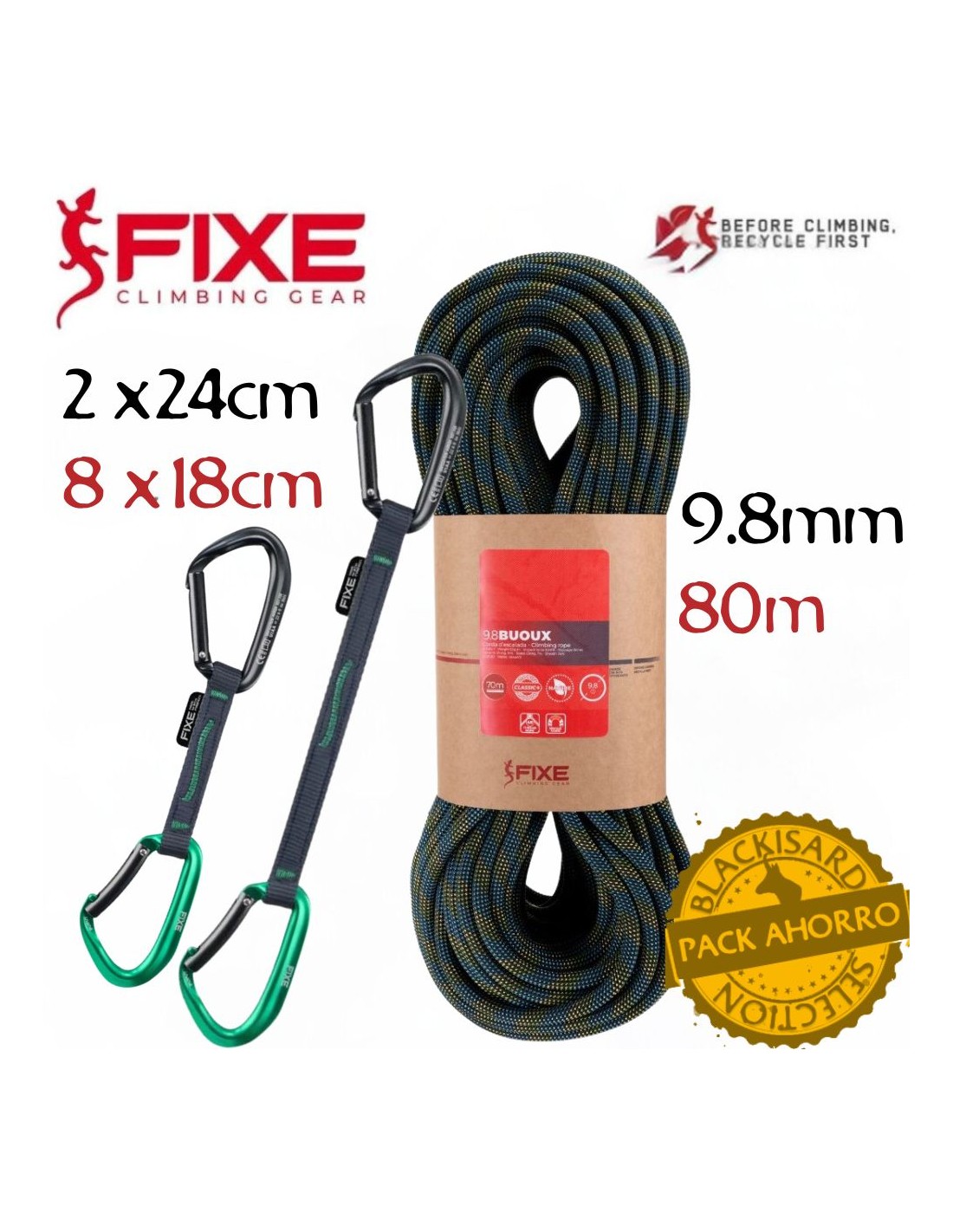 Pack Buoux 9.8mm (80m) + 10 cintas puput (8 x 18cm + 2 x24cm) - Pack escalada deportiva - Fixe