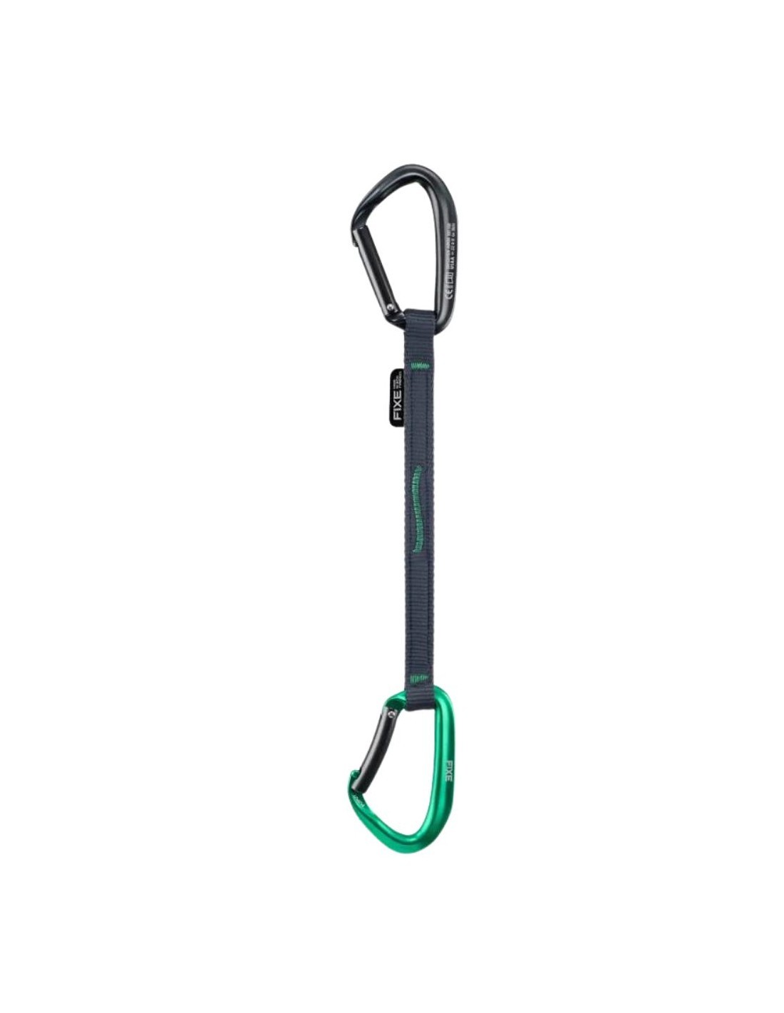 Su robusta cinta de poliamida se mantiene firme en la pared, sin sufrir torsión, de esta forma el mosquetón siempre mantendrá la orientación deseada. El mosquetón inferior se mantiene fijo gracias a la costura oblicua que resigue su forma. En la parte central, su genuina costura de seguridad la hace inconfundible. La cinta está disponible en 4 longitudes: 12 cm, 18 cm, 24 cm y 35 cm.