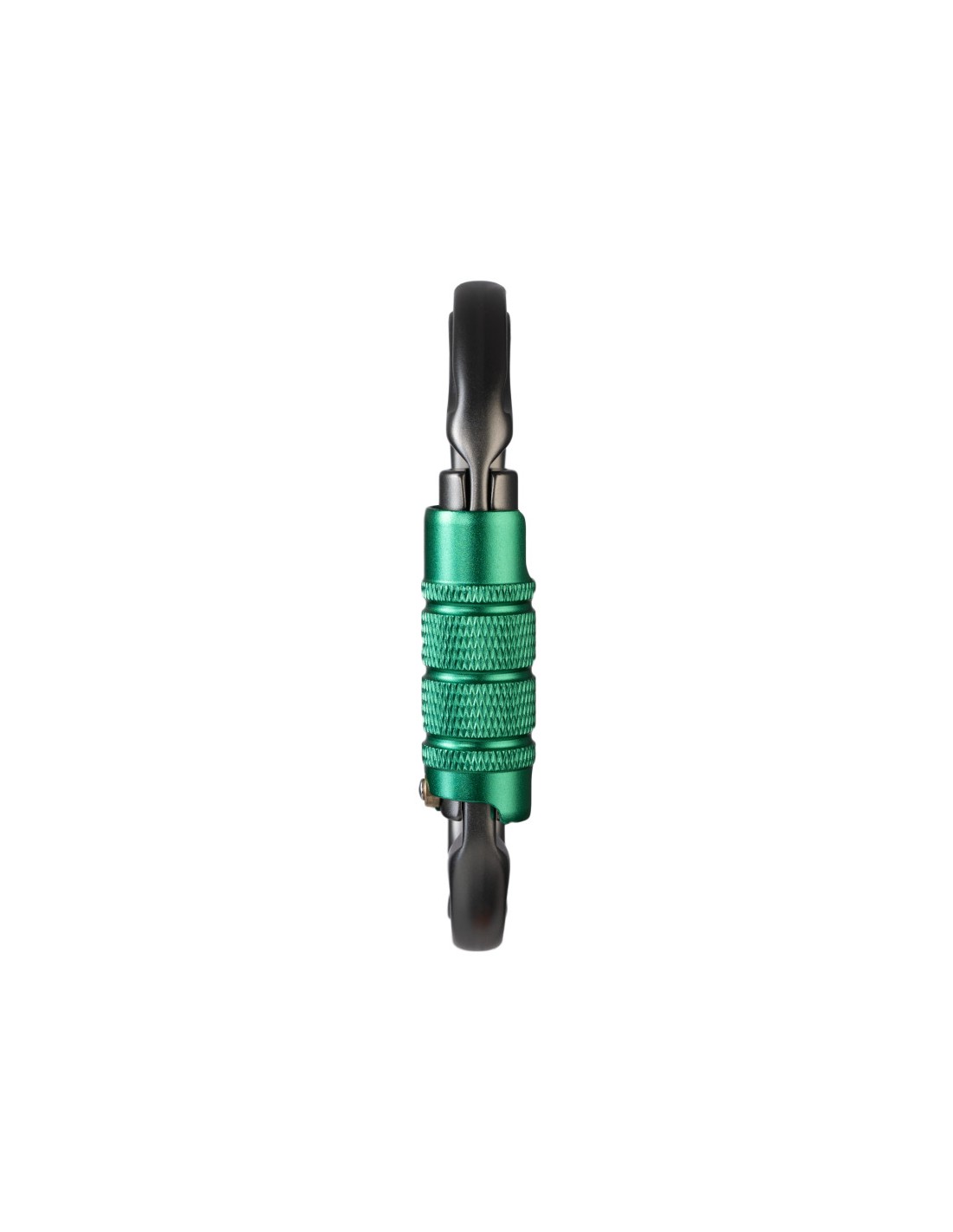 Mosquetón simétrico con cierre automático de tres movimientos para máxima seguridad.
