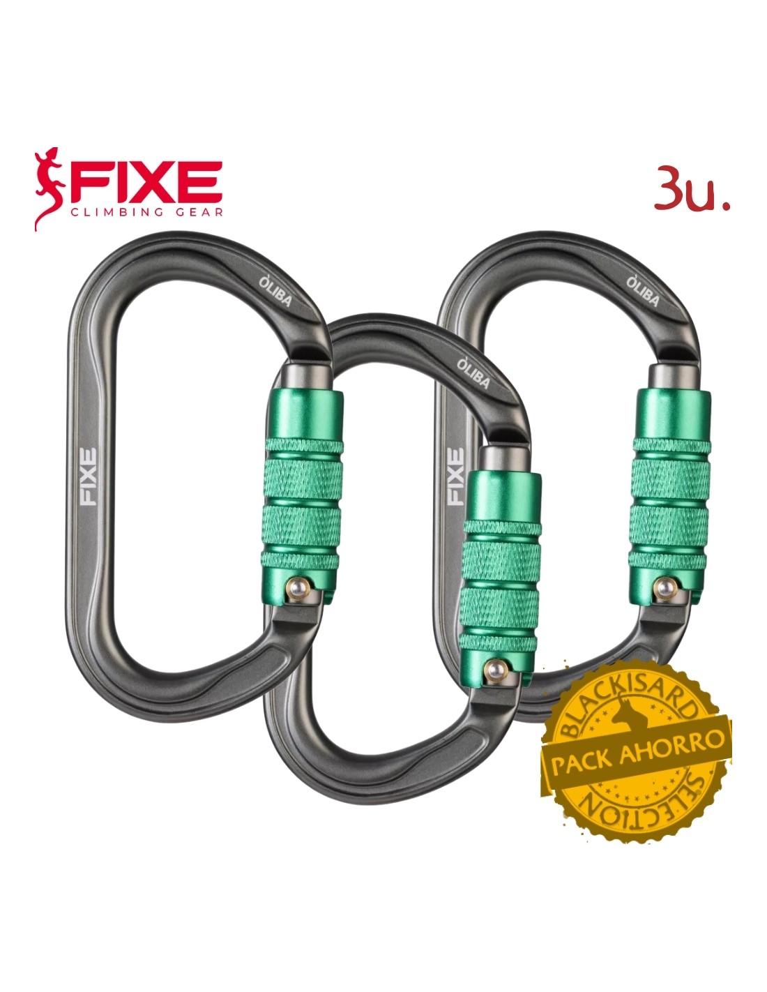Pack 3 Òliva Triple Lock - Mosquetón simétrico automatico 3 movimientos - Fixe