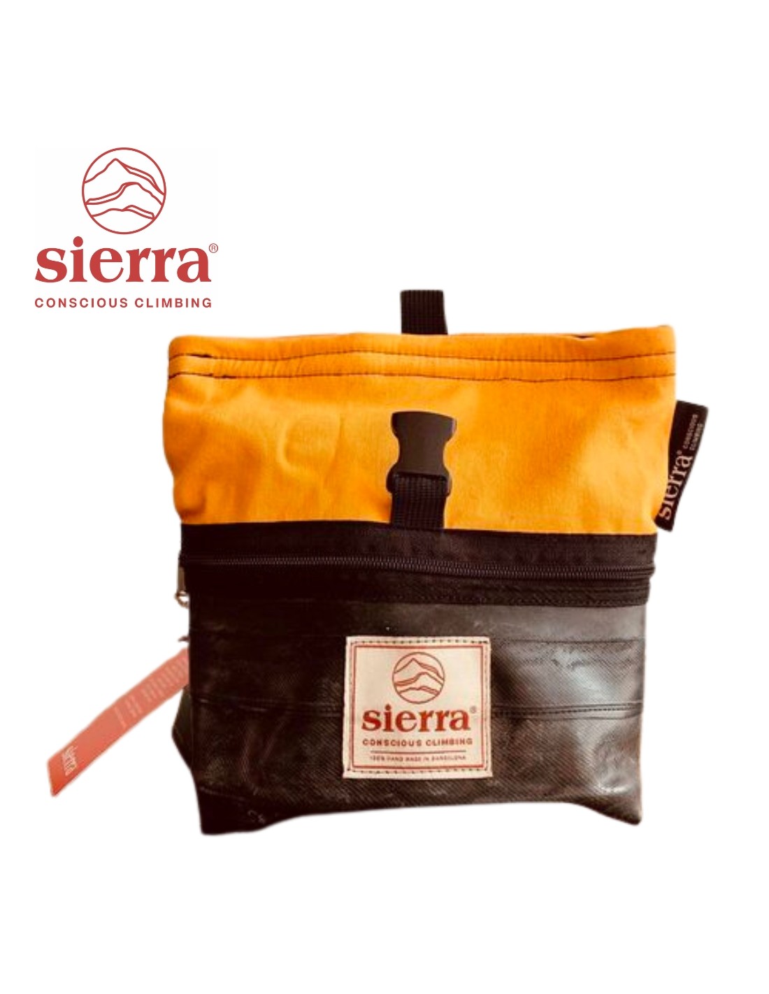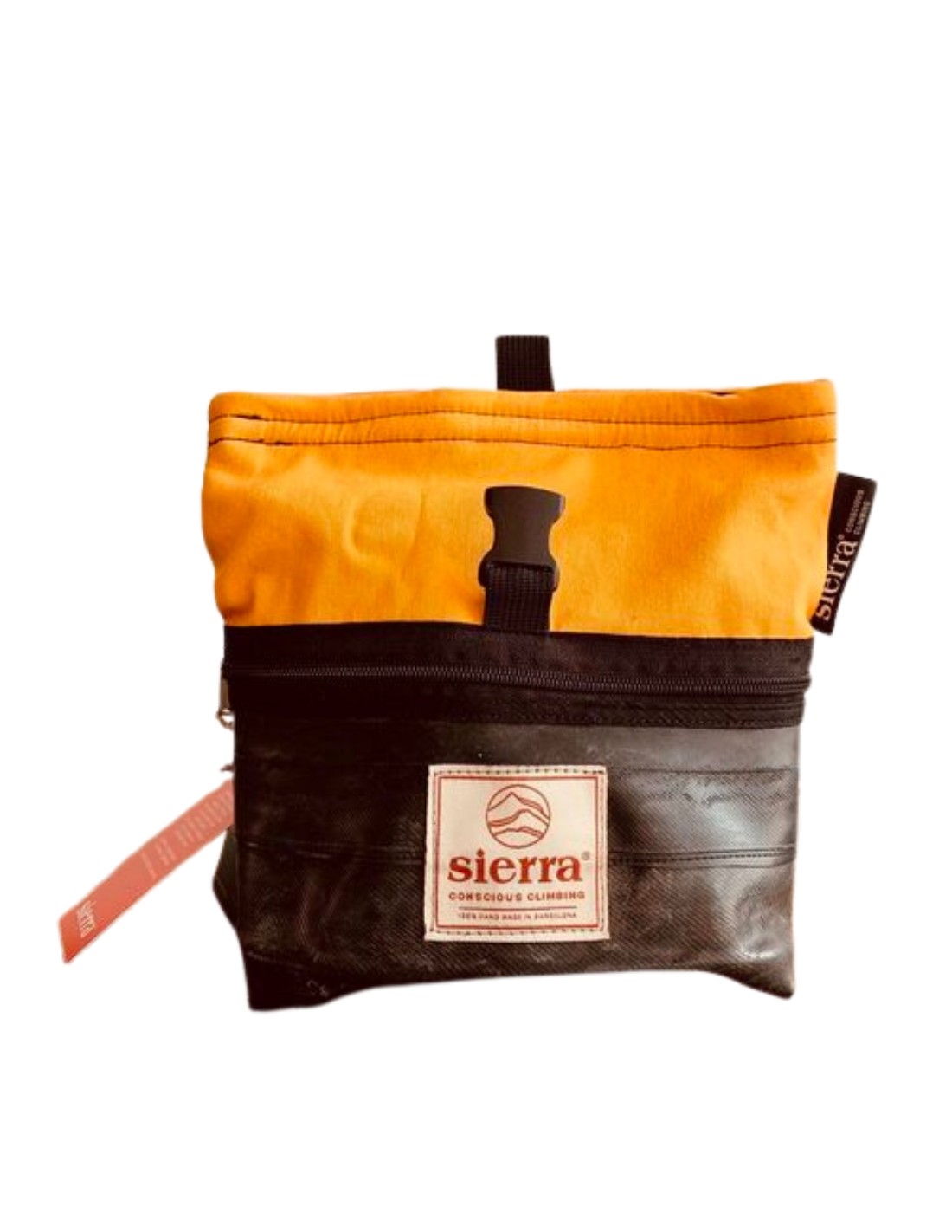 Nuestra bolsa de boulder Franken ha sido especialmente confeccionada con cámaras de aire de bicicleta recicladas en la parte inferior y con tejidos reciclados de ropa usada o con el resto de piezas procedentes del proceso de corte de otros productos de Sierra Climbing.