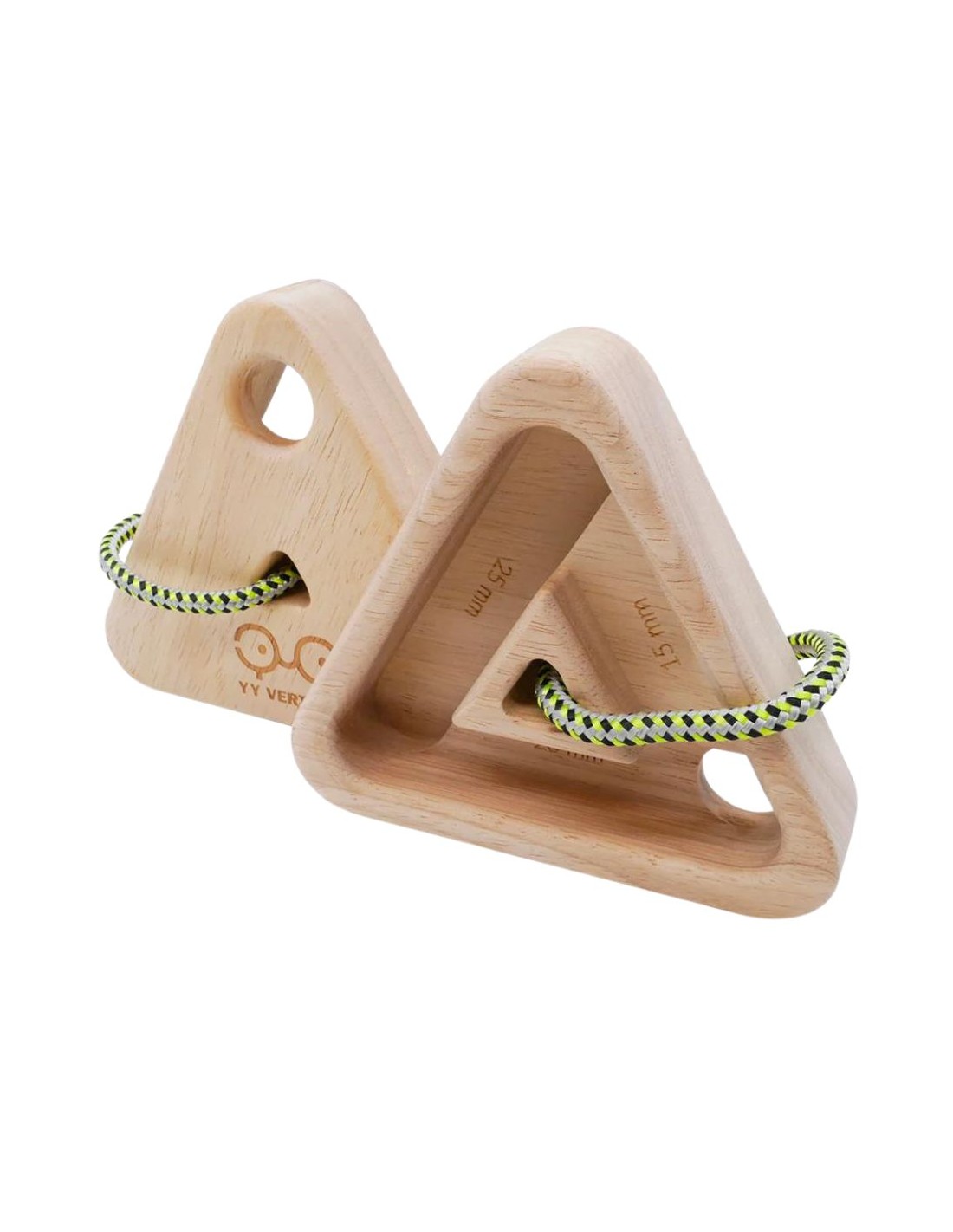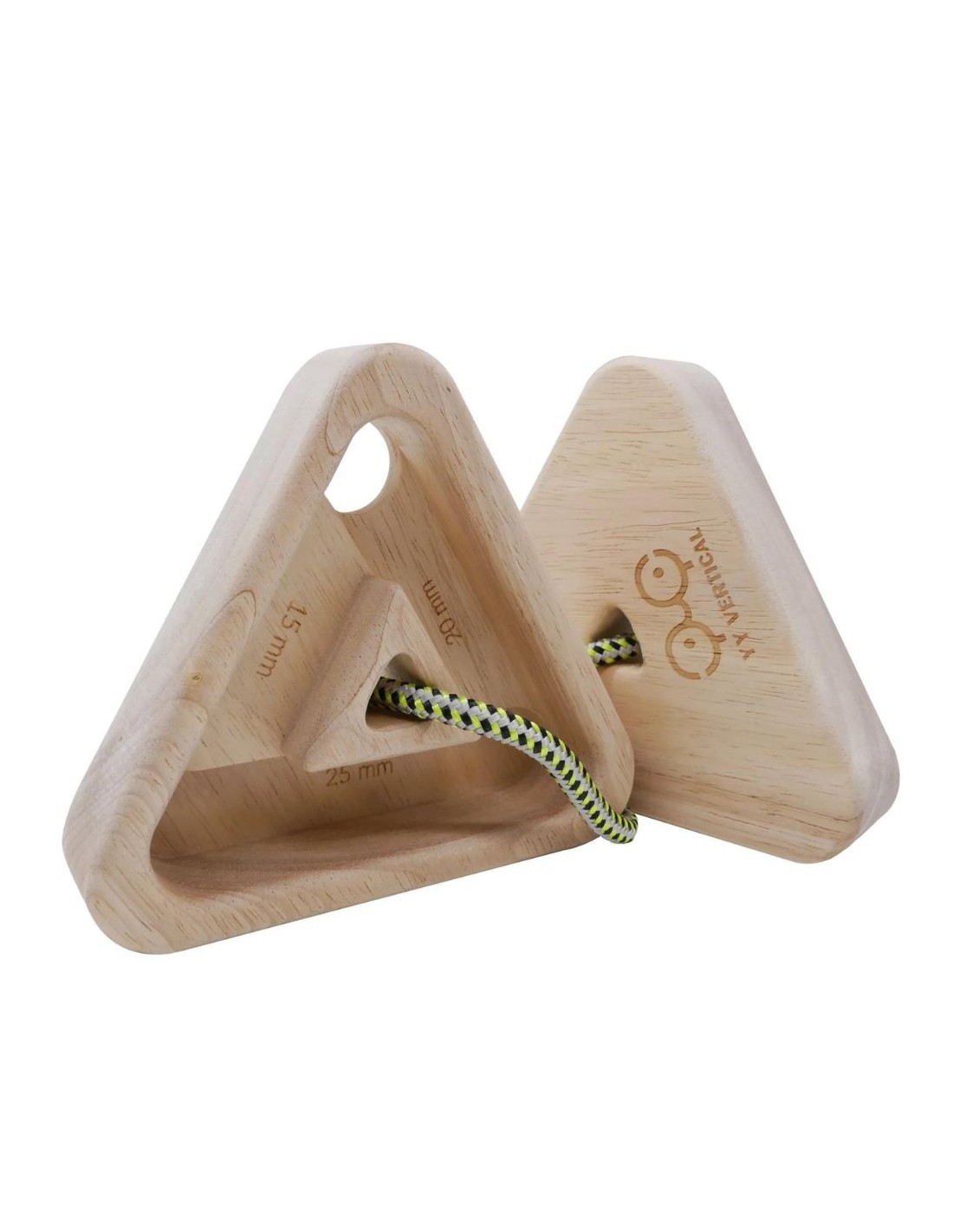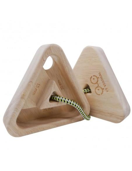 Los Triangles ofrecen una superficie suave al tacto cuyo confort y agarre convencerán a los escaladores. Diseñado para el calentamiento y entrenamiento en ejercicios de suspensión y tracción para fortalecer las estructuras pasivas y activas de dedos, brazos y espalda.