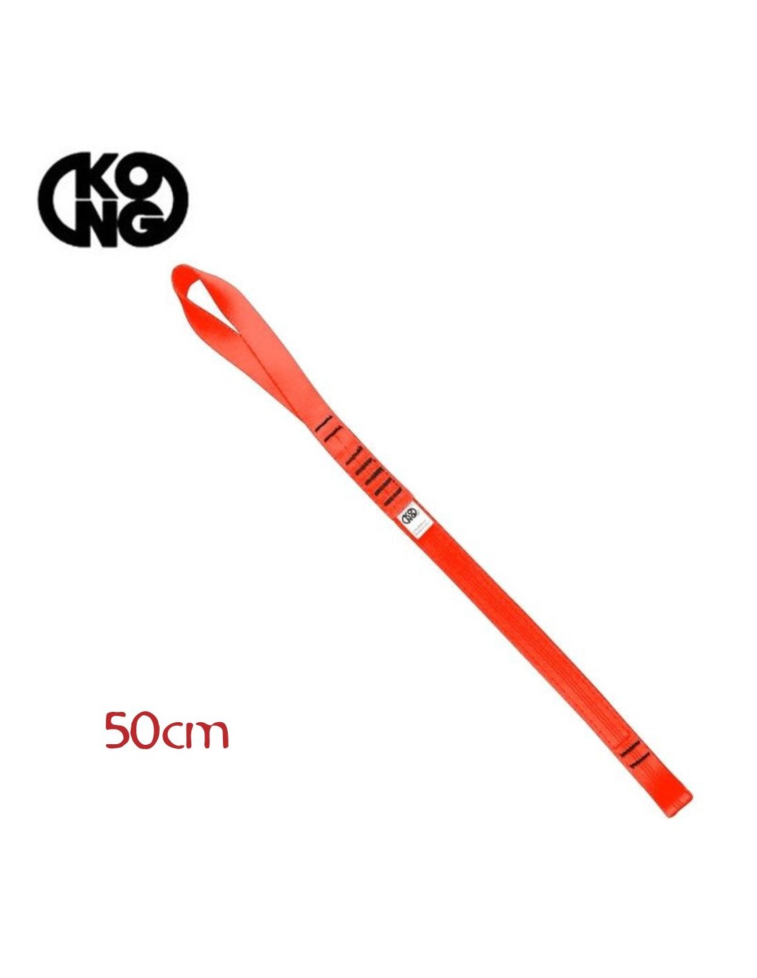El aro adventure de Kong es un cabo de anclaje simple, con un aro amplio en un extremo, que permite realizar la alondra para unirlo al arnés y un pequeño bucle de cinta cosida en el otro extremo que permite colocar un mosquetón.