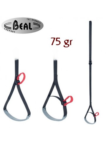 Pedal de longitud regulable con cierre rápido alrededor del pie para remonte por cuerda con puño bloqueador o bloqueador simple.