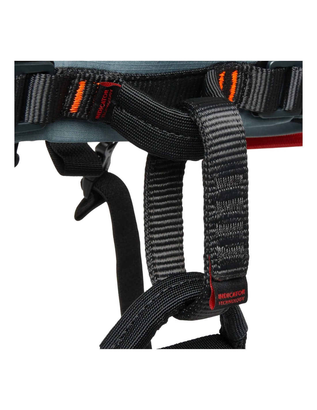 - Indicador de reemplazo del arnés en los puntos de amarre y bucle de aseguramiento.