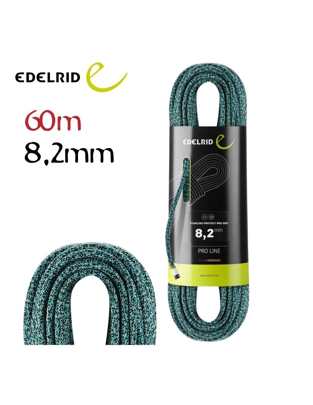 Edelrid Starling Protect Pro Dry 8,2 mm es una media cuerda de escalada que da lo mejor de sí en terrenos alpinos.