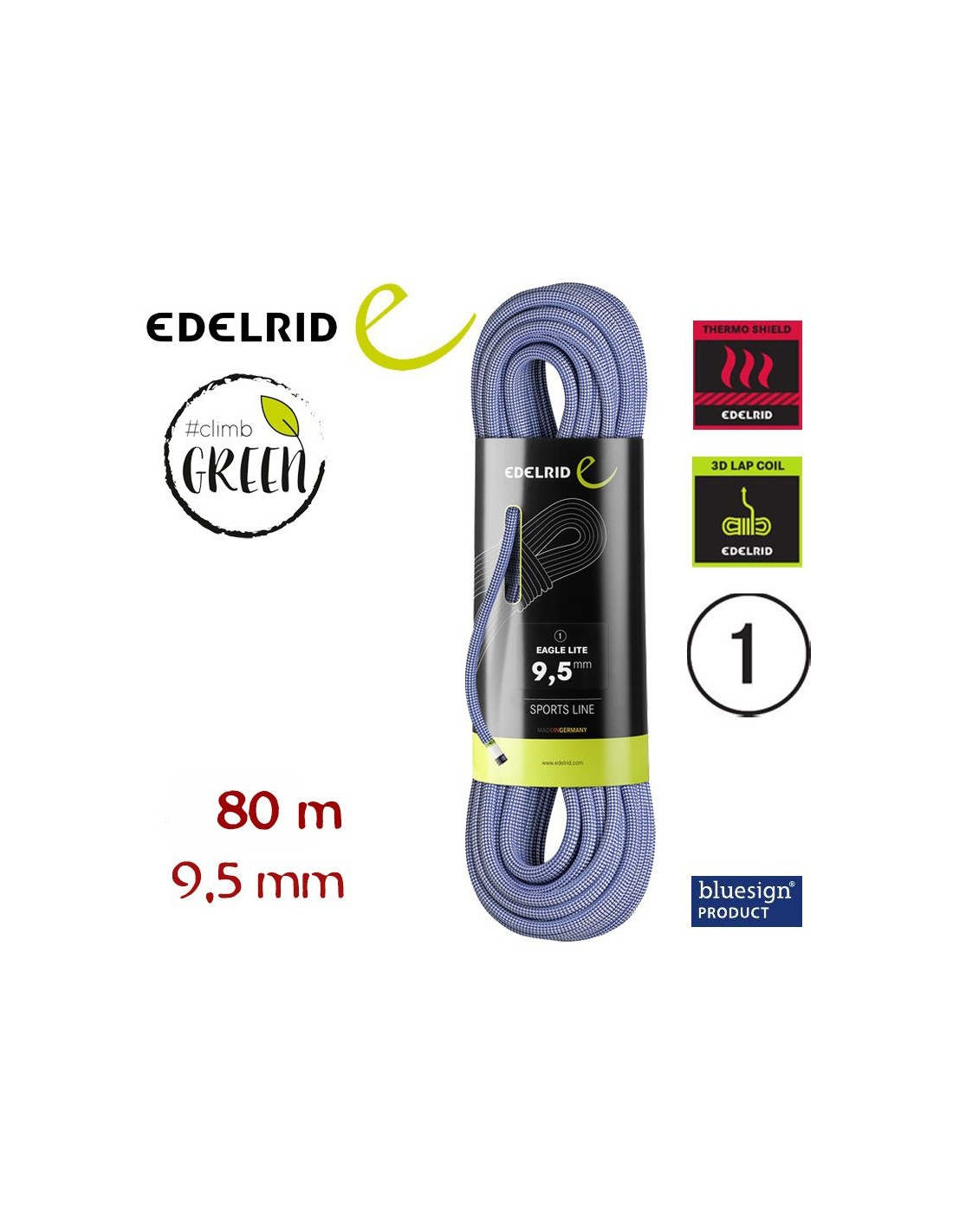 CUERDA SIMPLE EAGLE LITE 9,5 mm 80 M (POLAR) - EDELRID