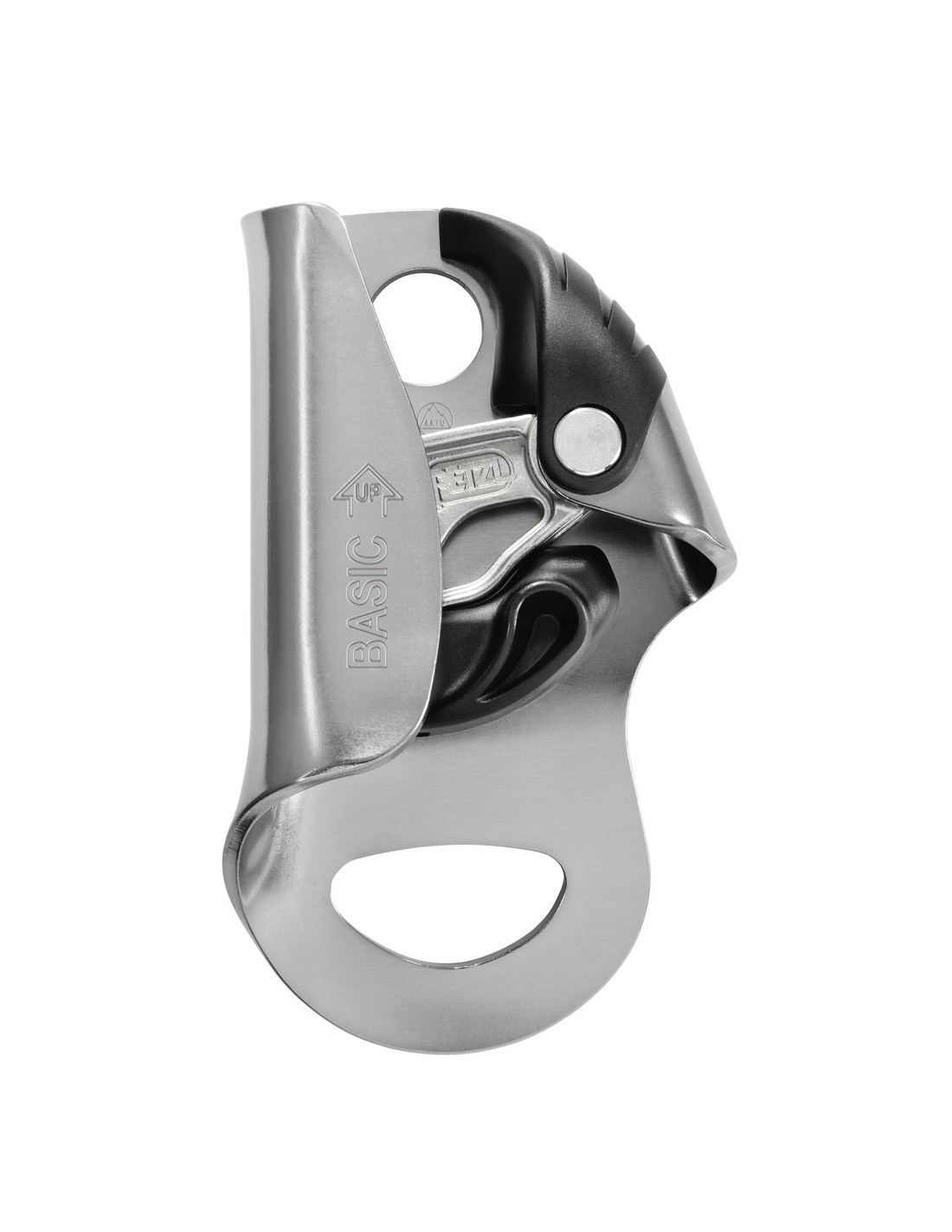 El BASIC es un bloqueador compacto que ofrece una excelente sujeción en mano para ascender por cuerda fija. El amplio orificio inferior de conexión permite conectar el mosquetón del elemento de amarre así como el del pedal.