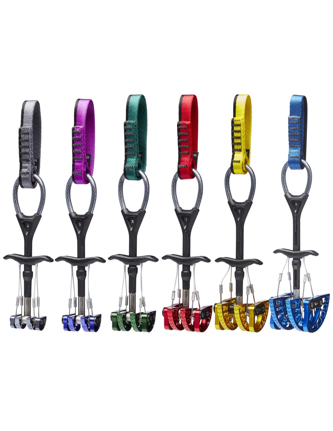 Disponible en un juego de 0.3-0.5 para los fanáticos del bloqueo de dedos, un juego de 0.75-2 para los escaladores más versátiles y un juego de 0.4-3 que abarca la gama más amplia de tamaños para todo tipo de escalada. Al comprar un juego, ahorras un 10%. ¡Aprovecha!