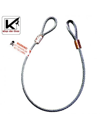 Cable de acero ligero con guardacabos en ambos lados para conectar el pitón con el martillo mediante mosquetones y extraerlo fácilmente.