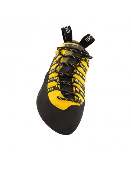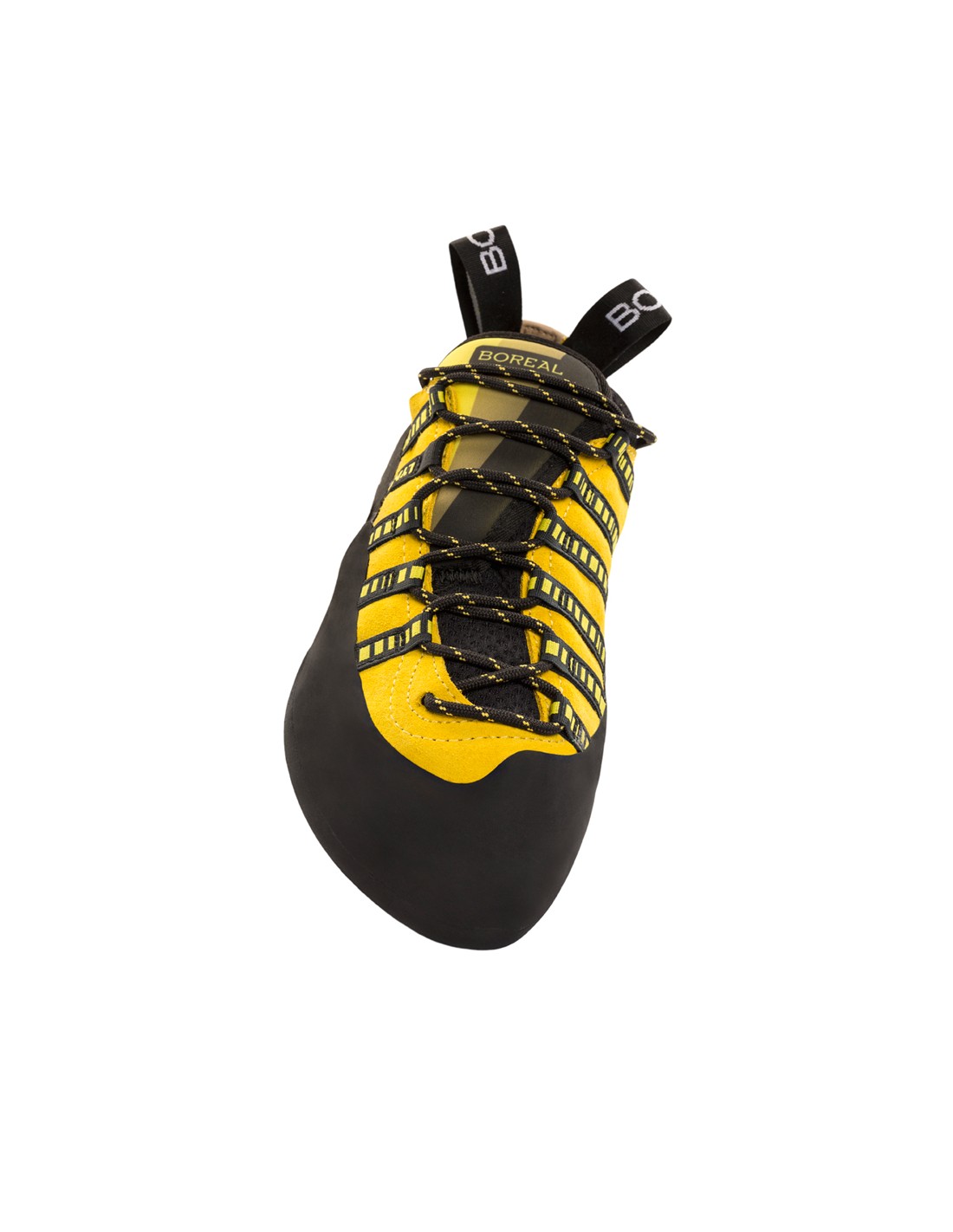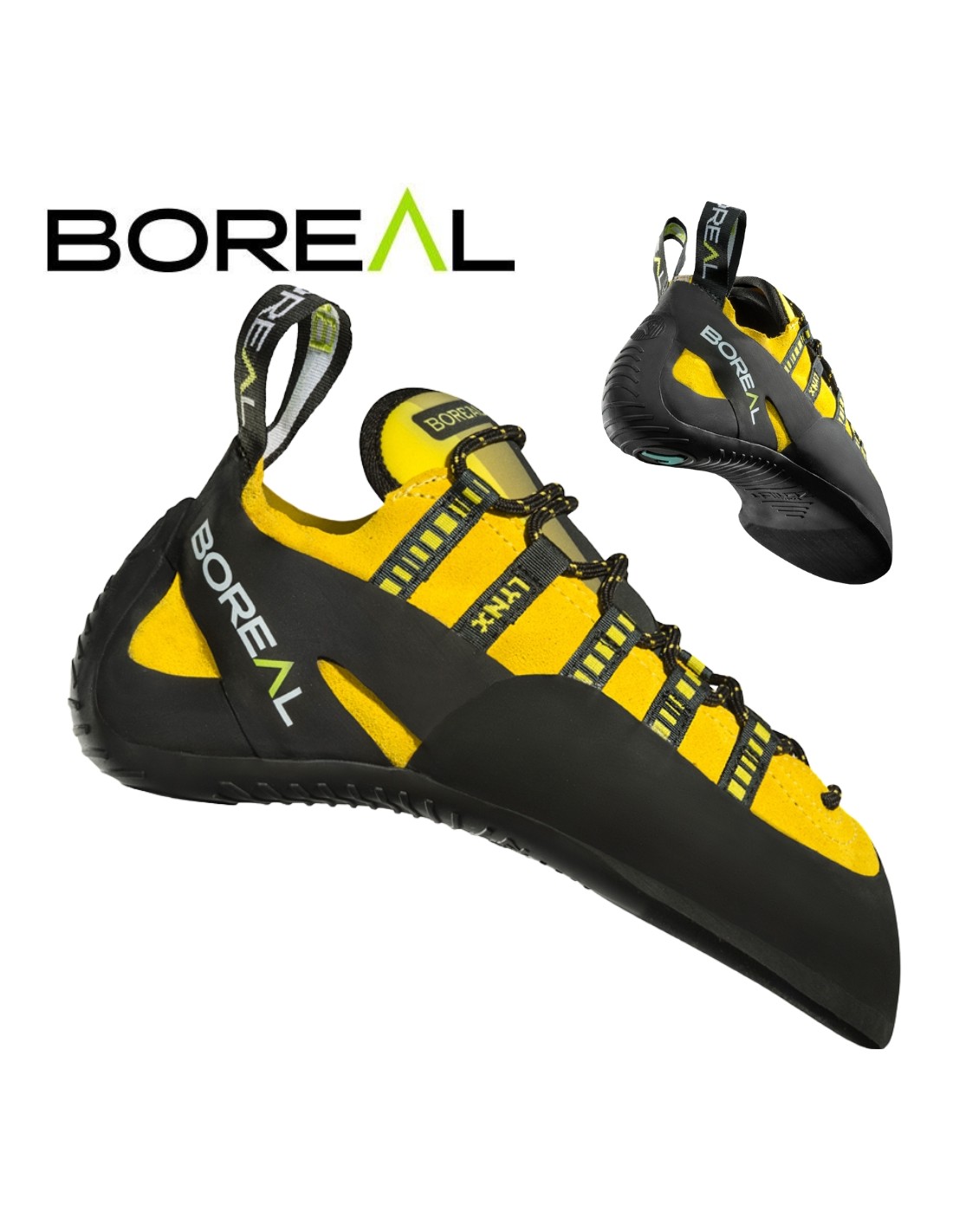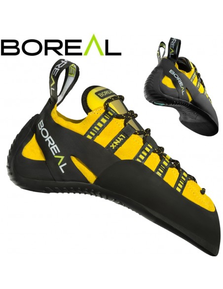 El sistema de cierre mediante cordones permite un ajuste exacto y uniforme a lo largo de todo el pie, logrando una adaptación natural y segura. Su construcción en microfibra y entresuela de rigidez media proporcionan la combinación perfecta de soporte y sensibilidad, lo que convierte al Lynx en un modelo versátil para desplomes, placas técnicas y vías de dificultad.