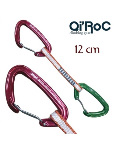 El Set dyneema wifi de Qi'Roc es un set express ULTRALIGERO compuesto de una cinta express de dyneema de 12 cm de longitud y sólo 10mm de ancho y dos mosquetones wifi de cierre alambre uno recto y el otro curvo.