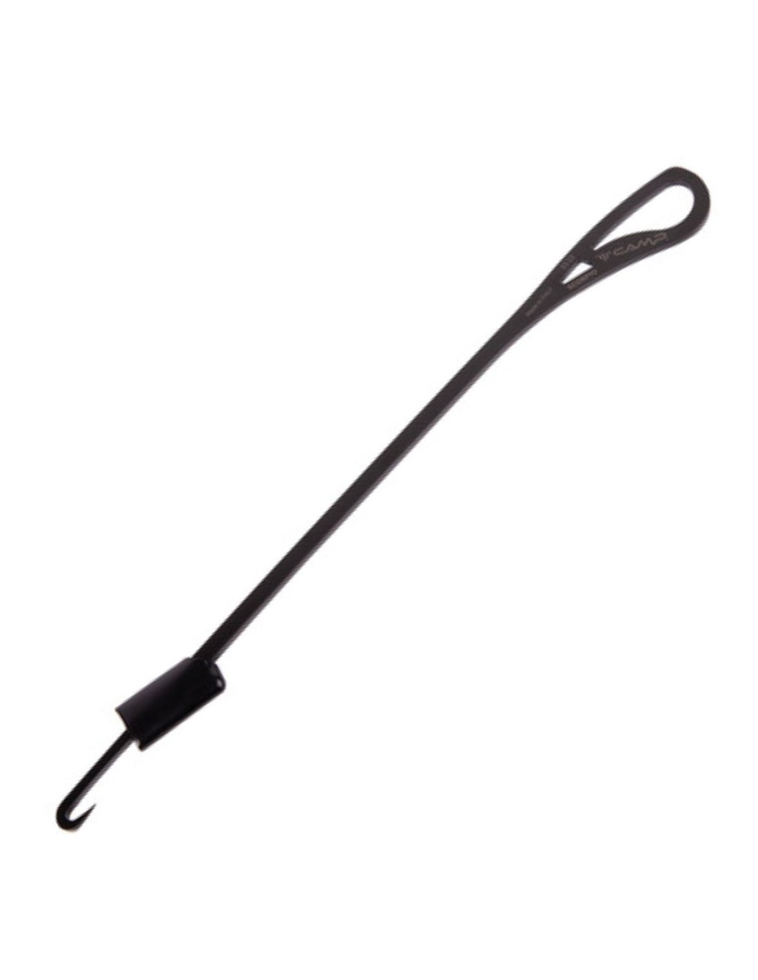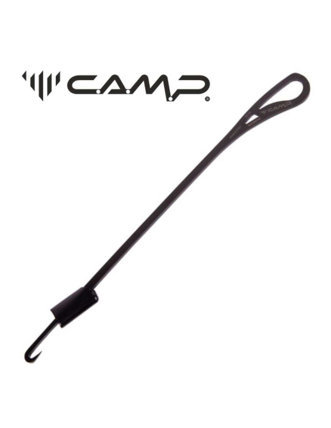 Accesorio ligero y de fácil uso para enganchar la cuerda en la realización de los anclajes Abalakov. Ideal también para quitar los núcleos de hielo de los tornillos recién extraídos.
