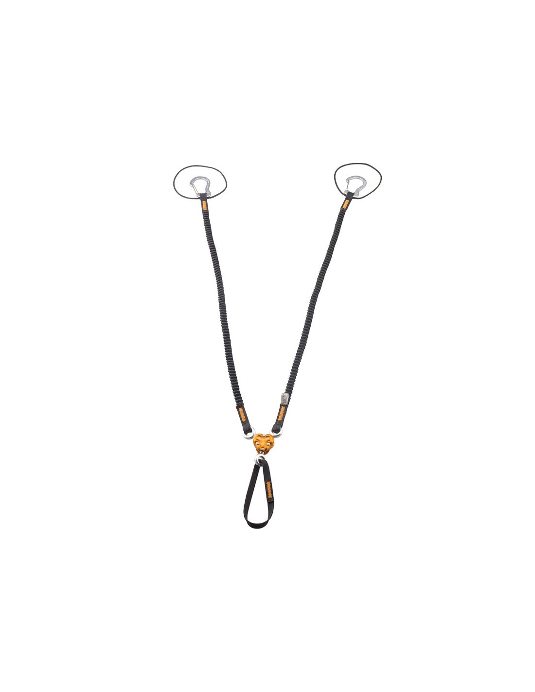 X-Gyro Leash se caracteriza por un sistema de triple conexión Gyro que, al permitir una rotación de 360° de cada uno de los tres puntos de enganche (arnés, piolet derecho, piolet izquierdo), garantiza la independencia de las eslingas conectadas a los mismos, eliminando de este modo cualquier enroscado. A propósito de las eslingas recordamos que son elásticas, para alargarse cuando sea necesario y luego volver inmediatamente a su longitud original para no crear obstáculos durante la ascensión. La conexión de los piolets se puede realizar de dos formas: con un par de mosquetones ligeros y compactos (incluidos) o a las eslingas con nudos de cabeza de alondra (sistema más seguro pero también más incómodo).