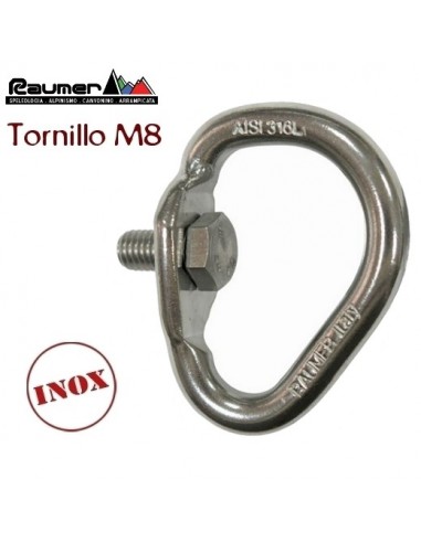 Anillo inoxidable en AISI 316L con tornillo inox M8 imperdible para espeleología