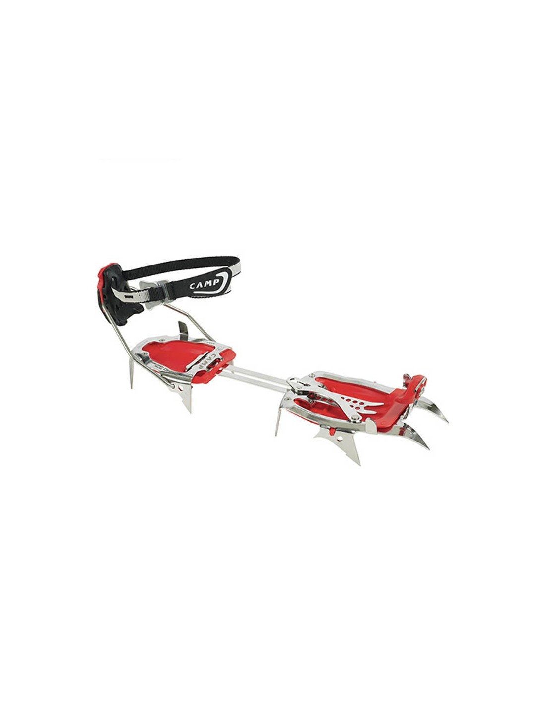 La barra de ajuste se caracteriza por una doble fila de orificios para lograr un ajuste micrométrico de la longitud y puede ser reemplazada con la cinta de Dyneema® disponible por separado, obteniendo un crampón aún más ligero y compacto durante el transporte.