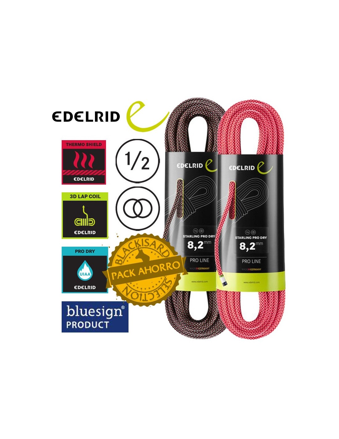 2 CUERDAS MEDIA STARLING ECO DRY 8,2 MM 60 M (1 negra + 1 rosa) - EDELRID