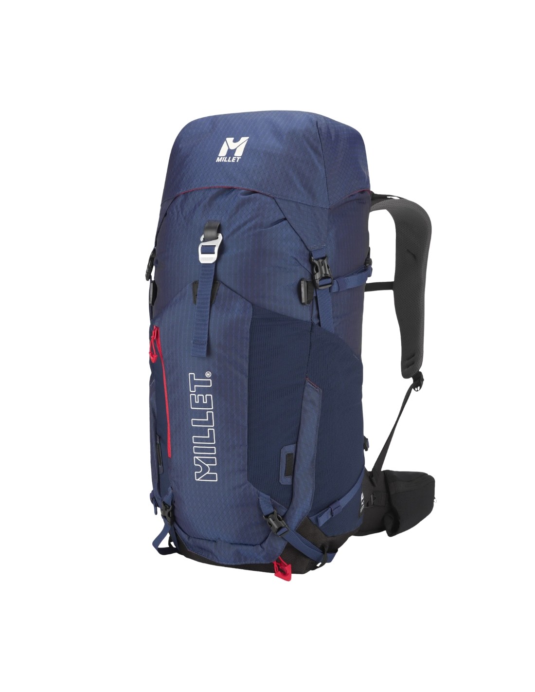 Las correas ergonómicas para los hombros están ajustadas. Recordatorios de carga ajustados. Avanzamos con comodidad. Nos gusta el aspecto moderno de esta mochila de senderismo, un éxito de ventas de la marca Millet, que utiliza un nuevo proceso de teñido y materiales secundarios reciclados para reducir su impacto ambiental. Una mochila duradera y versátil que nos permite llevar nuestro equipo en todas las estaciones (esquís, raquetas de nieve, tabla de snowboard, bastones, tienda de campaña, etc.).