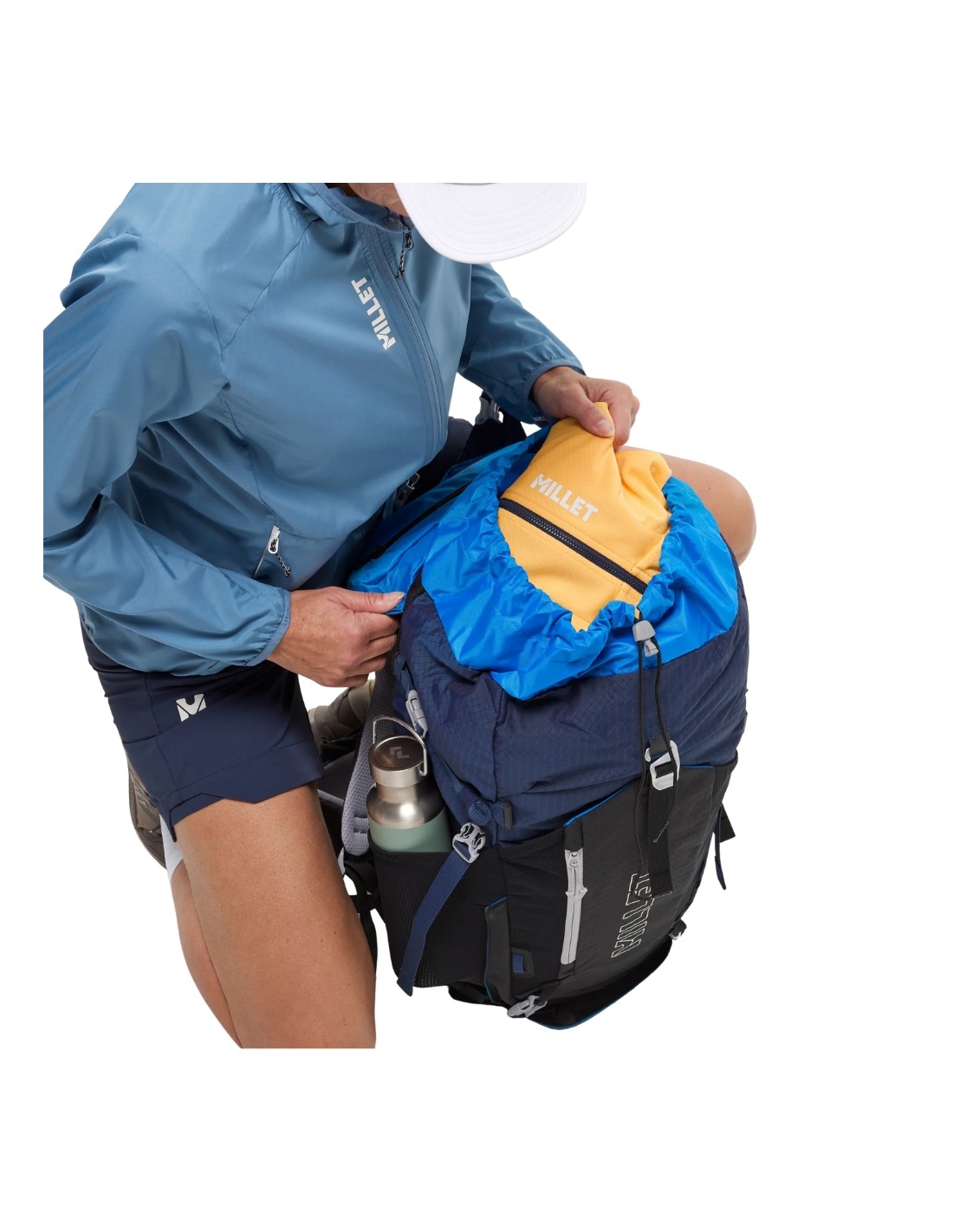 El diseño ergonómico de esta mochila de montaña, con correas adaptadas a la silueta femenina, nos ofrece una comodidad óptima en los senderos. Cuando el tiempo es inestable, podemos tener a mano nuestra chaqueta protectora en el bolsillo frontal extensible, mientras que la funda impermeable se guarda en su compartimento. Los dos bolsillos con cremallera del cinturón nos permiten tener a mano el teléfono, las gafas o una barrita energética. Una mochila ecodiseñada para un uso sostenible durante todo el año.