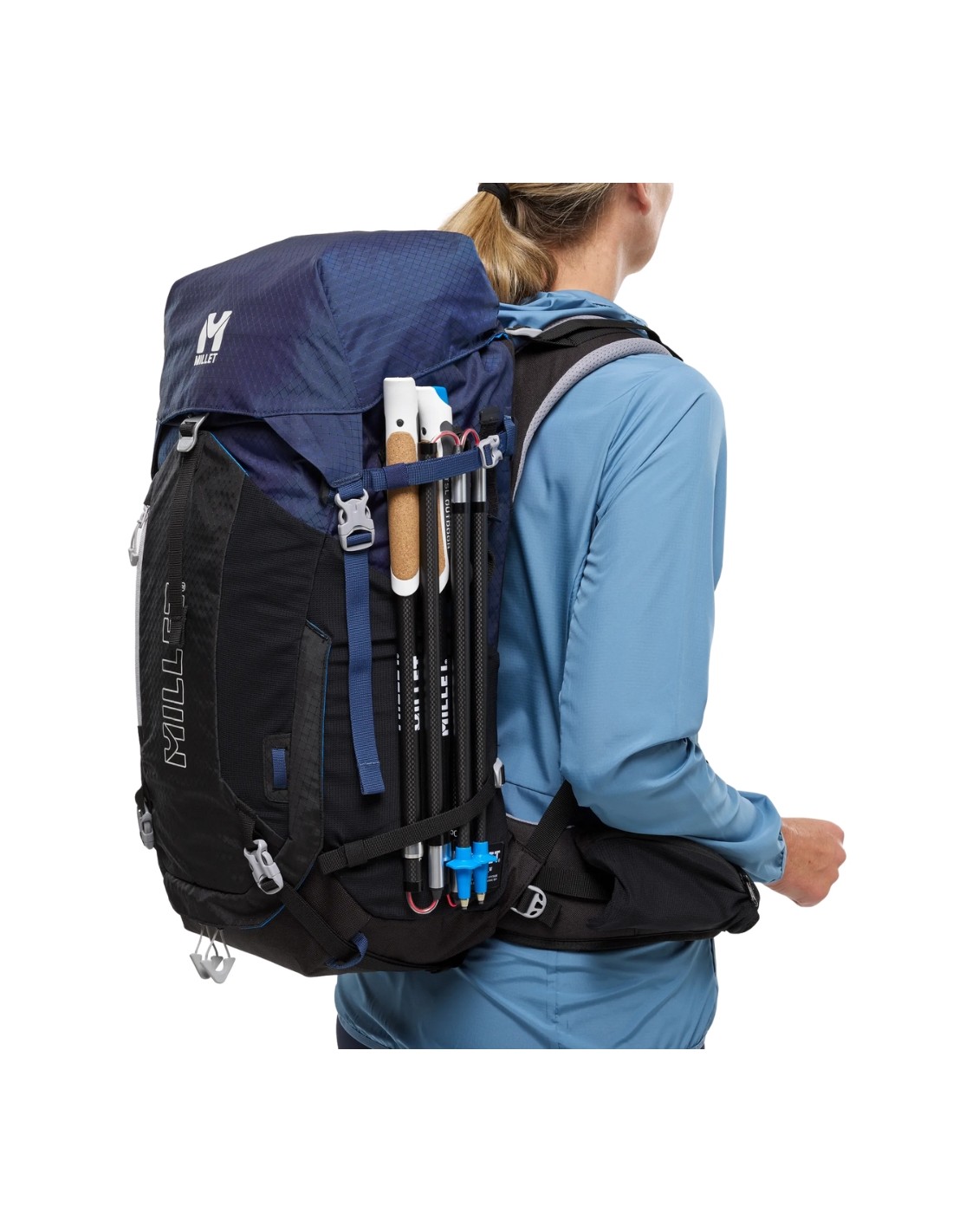 - Dos correas de compresión extraíbles para transportar cualquier equipo alpino