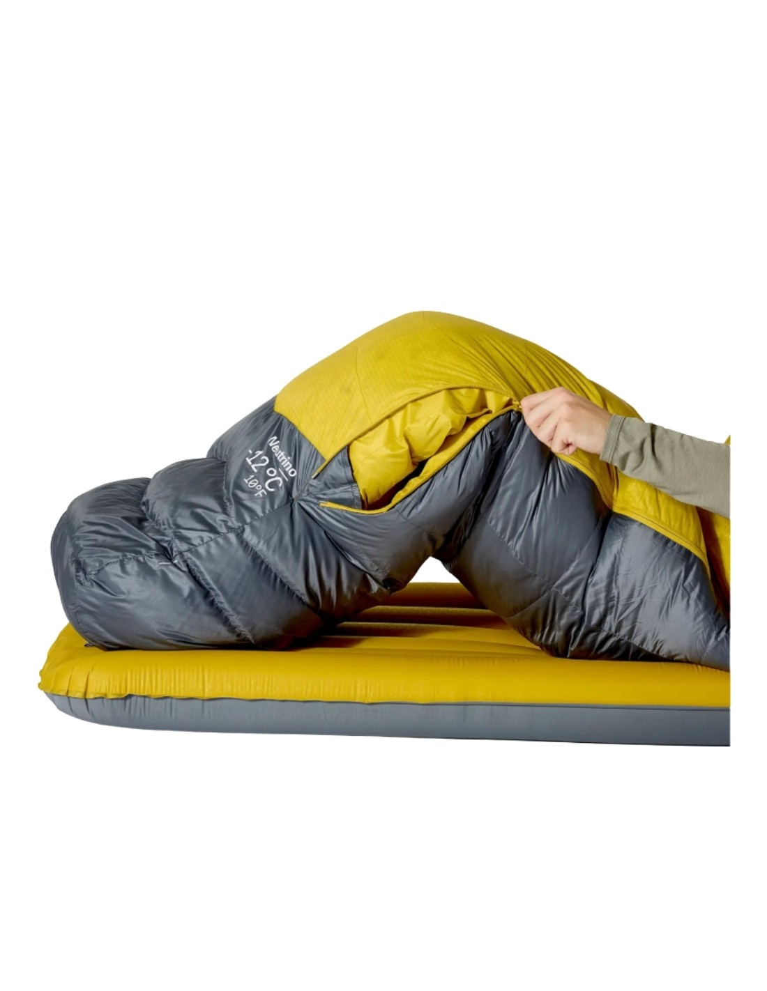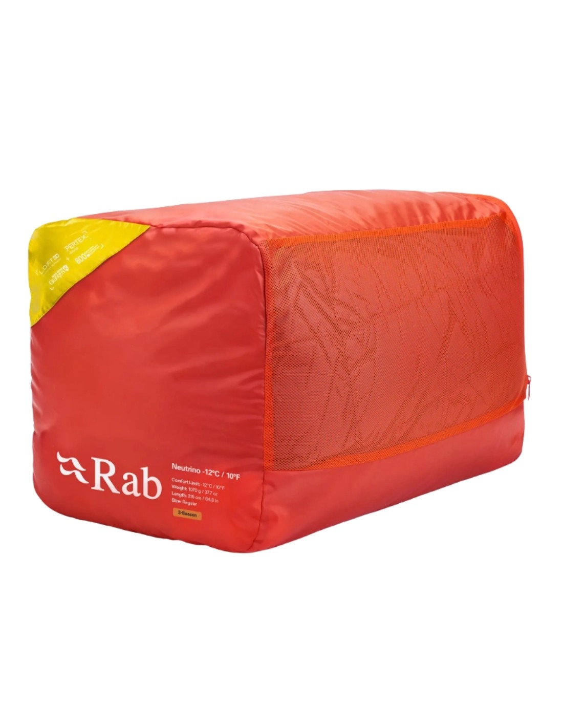 - El tejido Pertex® Quantum 20D en la base y la zona de los pies ofrece durabilidad en terrenos irregulares, mientras que el Pertex® Quantum 10D en la parte superior aumenta el volumen y facilita su compresión.