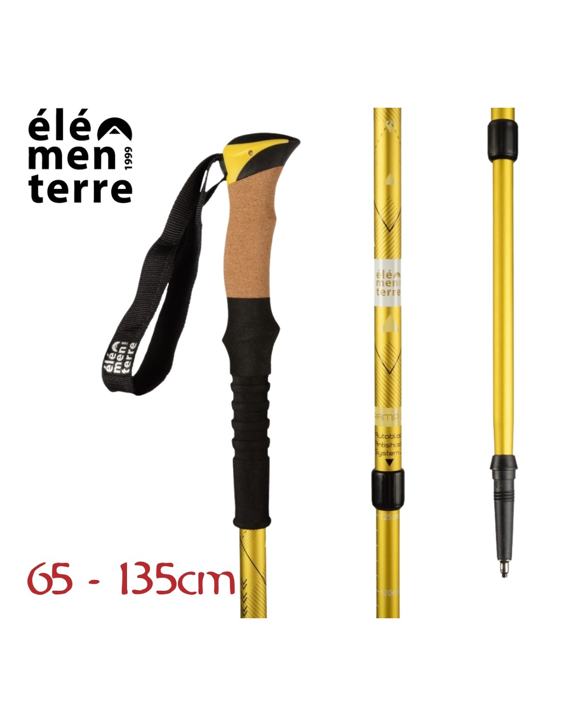 Tramp (Amarillo) - Bastón de senderismo largo con empuñadura de corcho - Elementerre