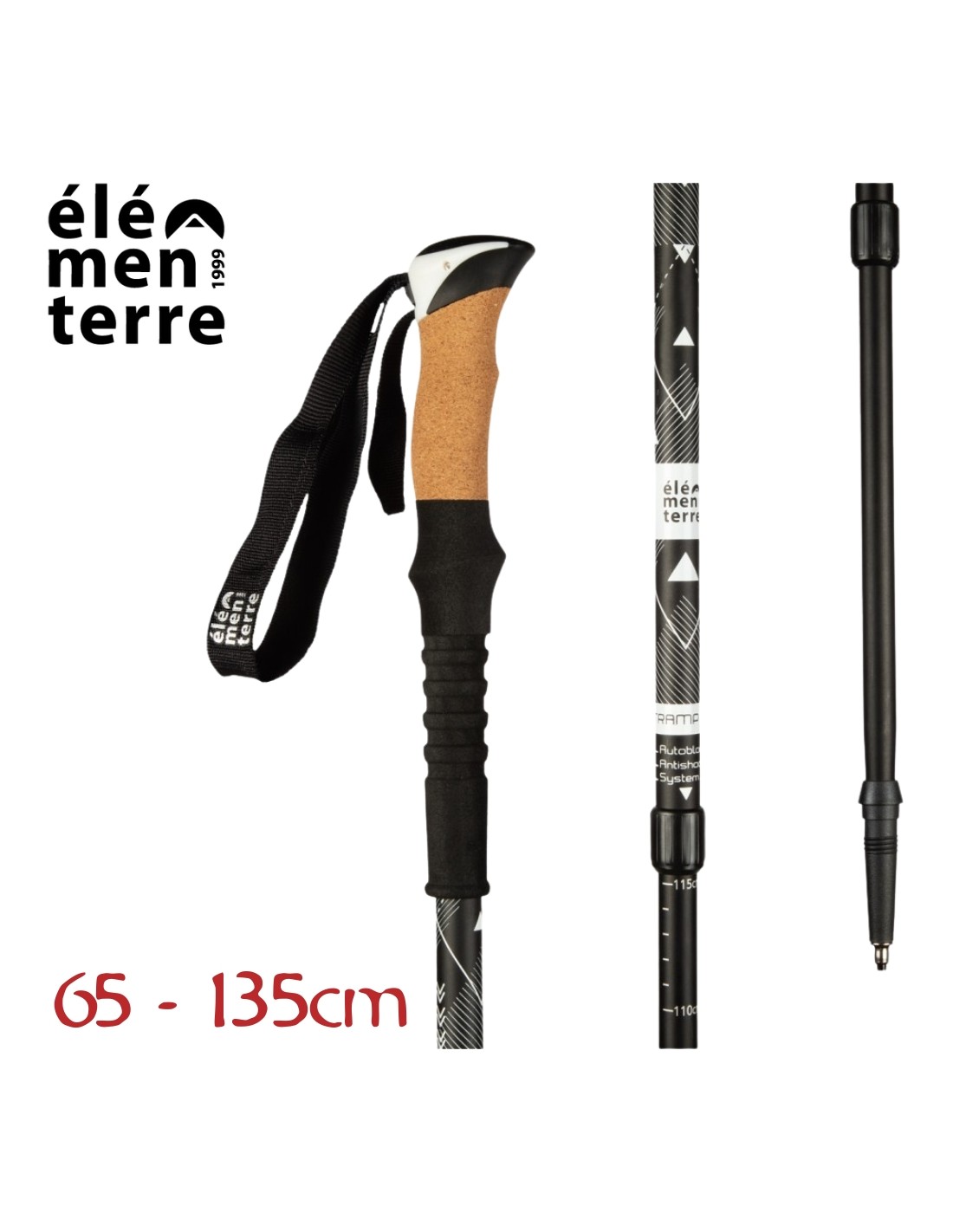 Tramp (Black) - Bastón de senderismo largo con empuñadura de corcho - Elementerre