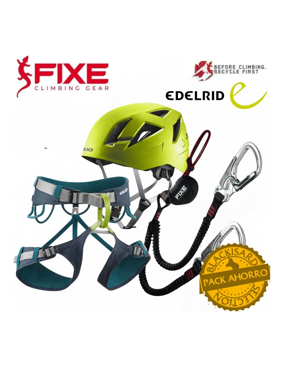Pack ahorro de material para via ferrata compuesto por los 3 elementos siguientes: