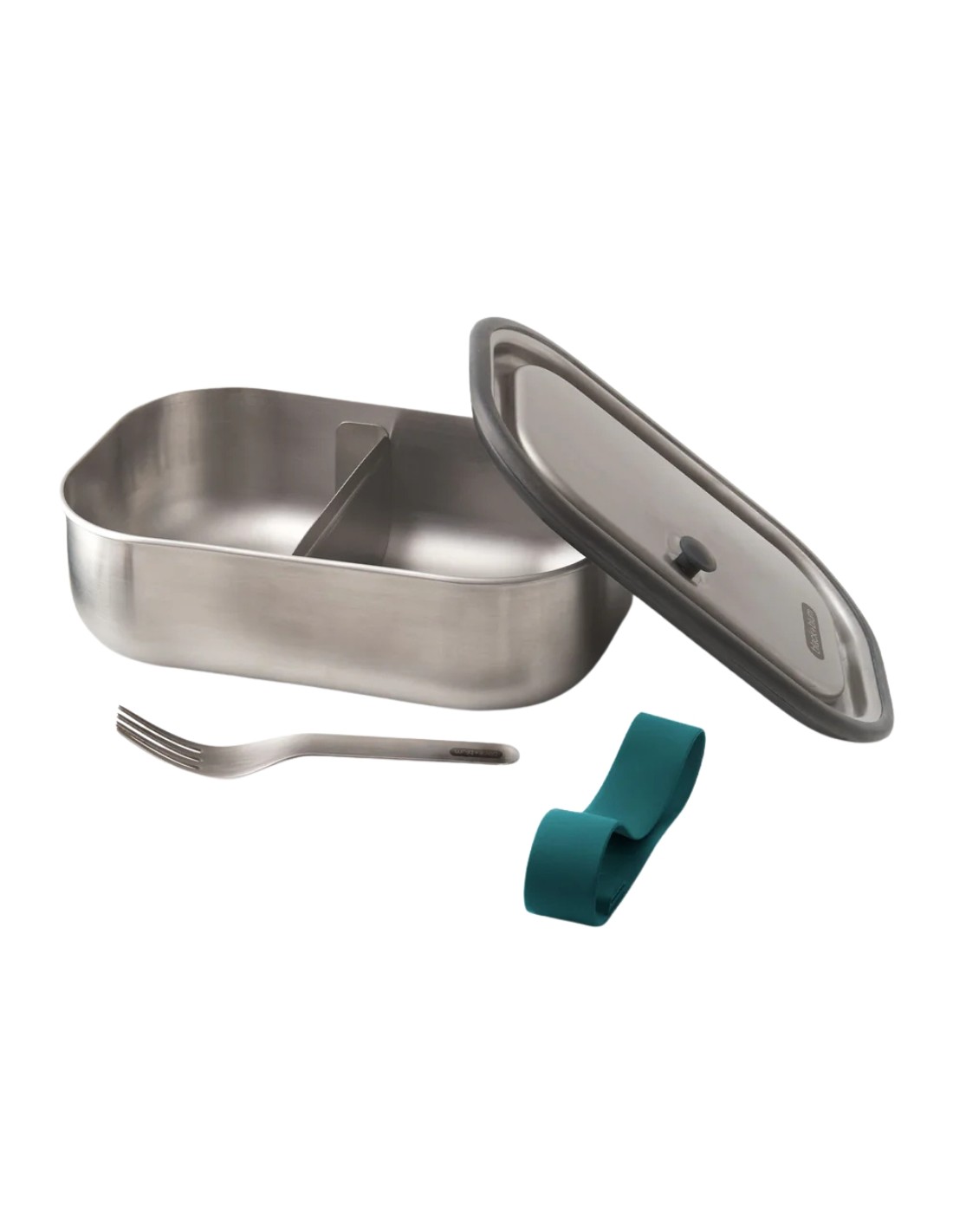 - Acero inoxidable (304/18-8), incluye correa de silicona, tenedor de acero inoxidable y separador deslizante para separar los alimentos.