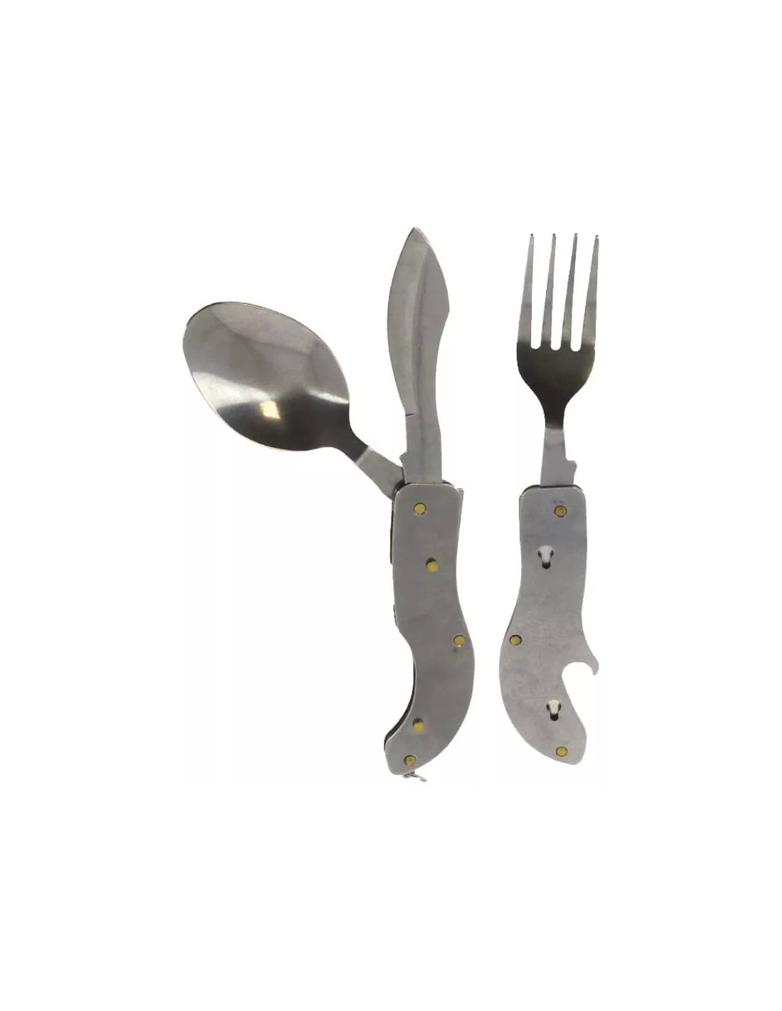 Un juego de cubiertos compacto y plegable (tenedor, cuchillo y cuchara), ideal para comer al aire libre. Ligero y fácil de transportar, cabe fácilmente en un bolso o bolsillo.