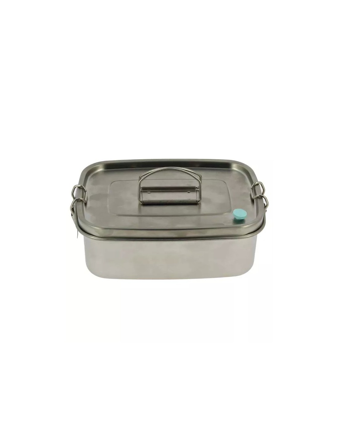 Recipiente de acero inoxidable para alimentos, ideal para guardar comidas o refrigerios. Resistente y duradero, perfecto para viajes o actividades al aire libre.