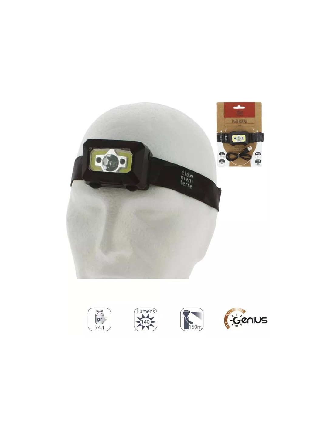 Linterna frontal recargable con sensor. Ideal para acampar, senderismo nocturno o trabajo al aire libre.
